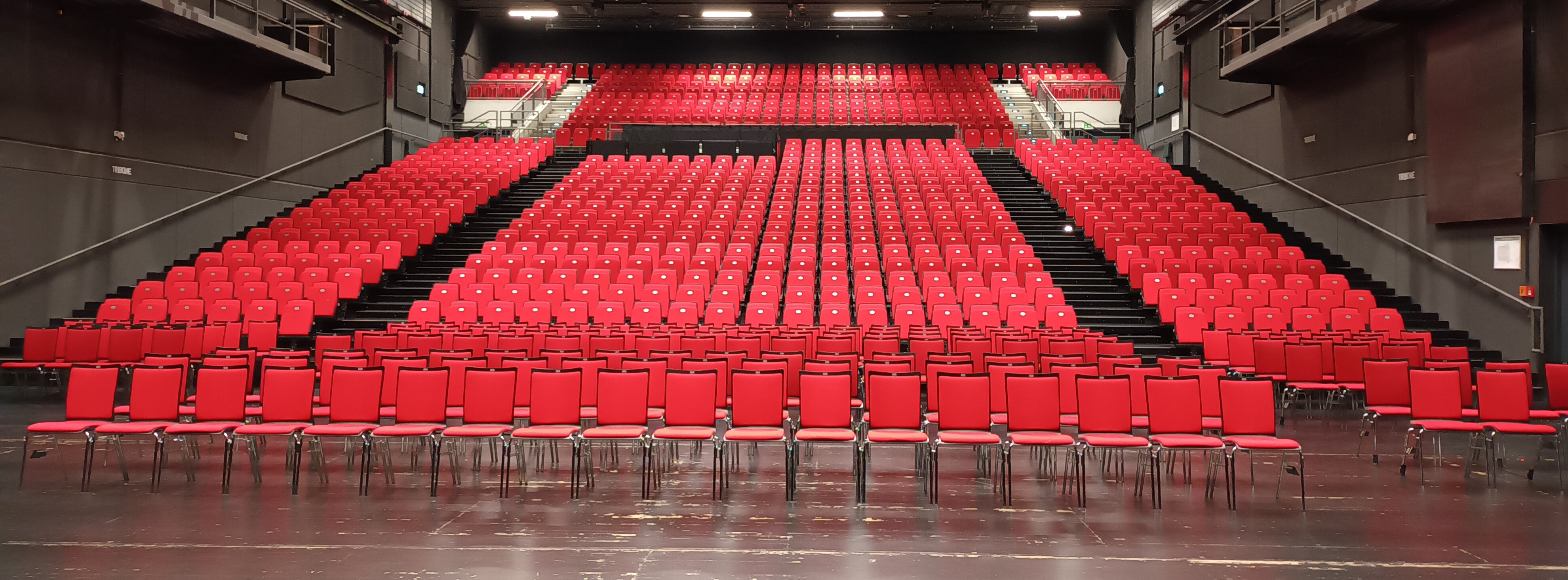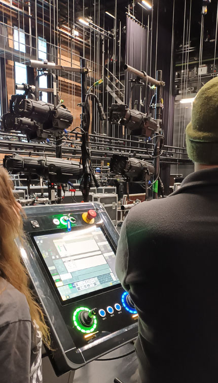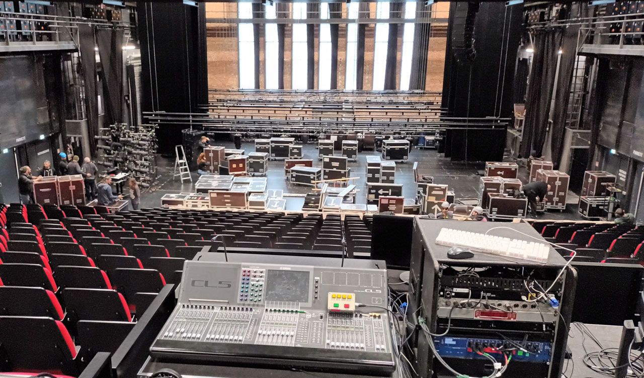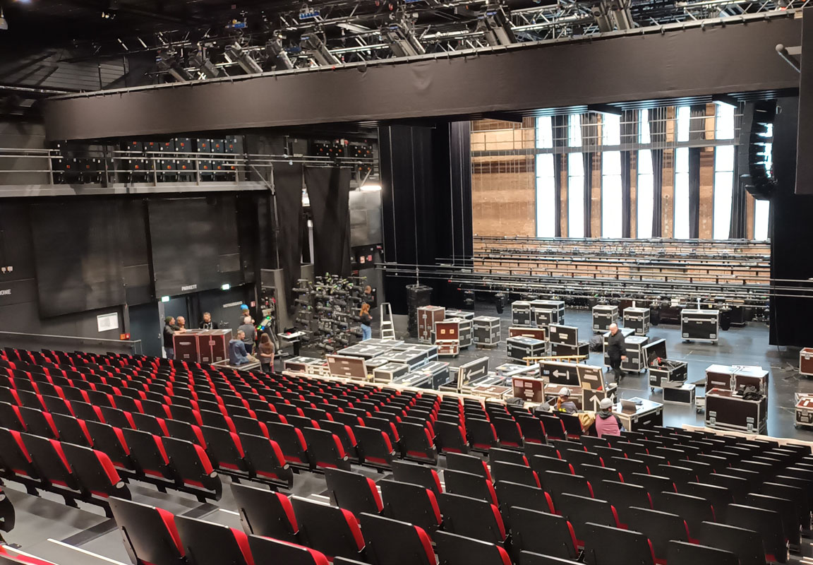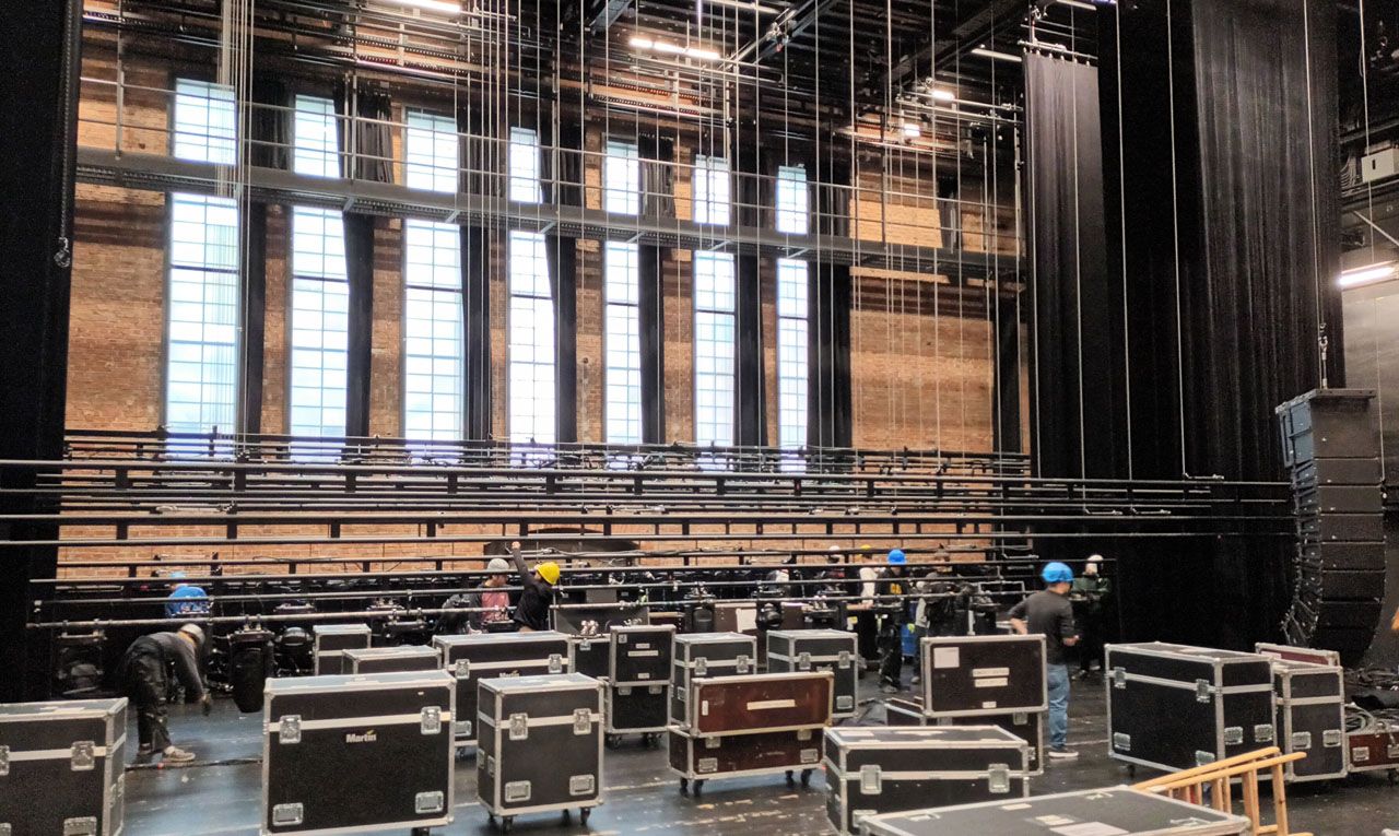 Die Bilder entstanden beim Aufbau für die Veranstaltung "Ballet Revolución" - hier kann man sehr gut den Einsatz der neuen Obermaschinerie mit den fahrbaren Lastzugstangen erkennen.
